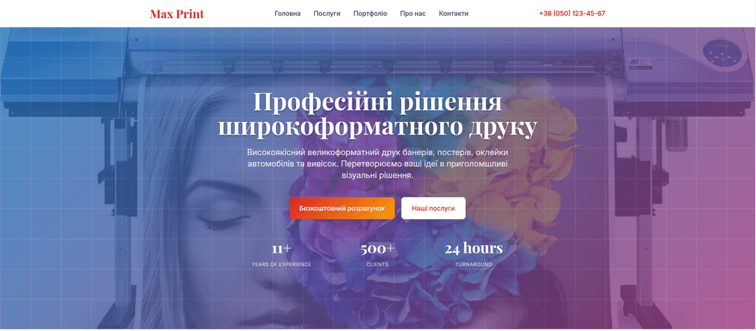 Max Print – Wide Format Printing Services Website I developed a modern, responsive website for Max Print, a professional wide-format printing company based in Odessa. The website presents the company’s services — including banner printing, poster design, car wrapping, signage solutions, and exhibition stands — in a clear and visually appealing way. A portfolio section showcases completed projects with high-quality visuals, while the services pages highlight key features, materials, and benefits of each printing solution.