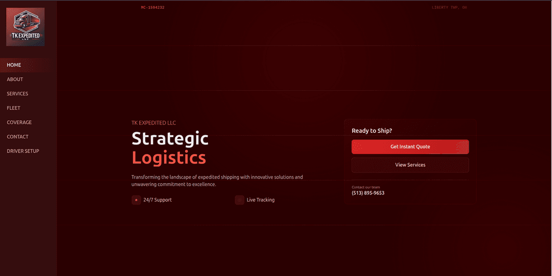 I developed a professional corporate website for TK Expedited LLC, a logistics company based in Liberty Township, OH. The site highlights their expedited shipping solutions, nationwide coverage, and modern fleet of sprinter vans, box trucks, and semi-trucks. The website features sections for services, fleet details, and regional coverage maps, making it easy for clients to request quotes or connect with the sales team. A dedicated driver setup page streamlines recruitment by outlining requirements and offering a direct application form.